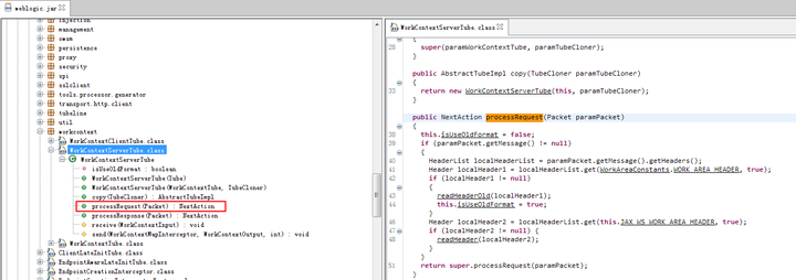 先看一下weblogic.wsee.jaxws.workcontext.WorkContextServerTube.processRequest方法
