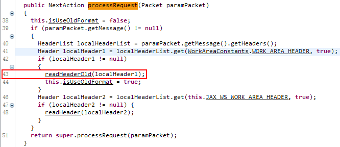 第43行,将localHeader1变量带入到readHeaderOld()方法中。localHeader1变量由第41行定义,其值为<work:WorkContext> </work:WorkContext> 标签包裹的数据。