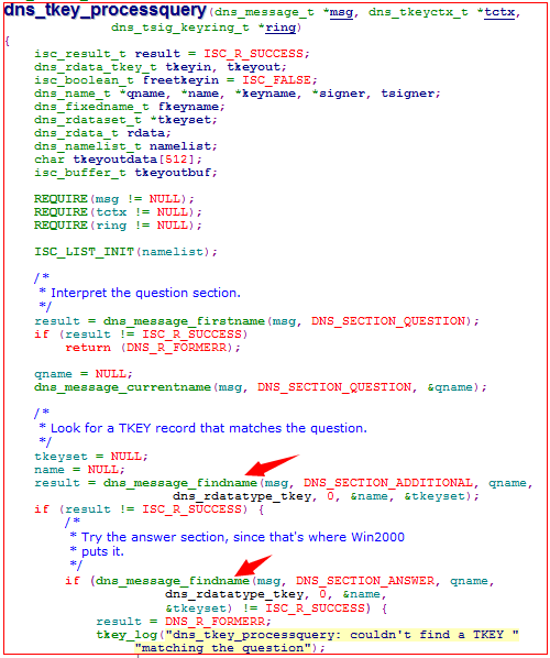 分析BIND9源码中的dns_tkey_processquery和dns_mssage_findname函数。