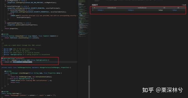 | where methodAccess.getMethod().hasName("lookup") and methodAccess.getMethod().getDeclaringType().hasQualifiedName("javax.naming", "Context") | 定义变量的条件 | 定义methodAcces的方法名为lookup,调用该方法的类为javax.naming.Context | |