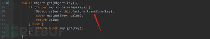 而Ysoserial CC1链使用的LazyMap类关键点在其get( )方法,会触发transform过程。
